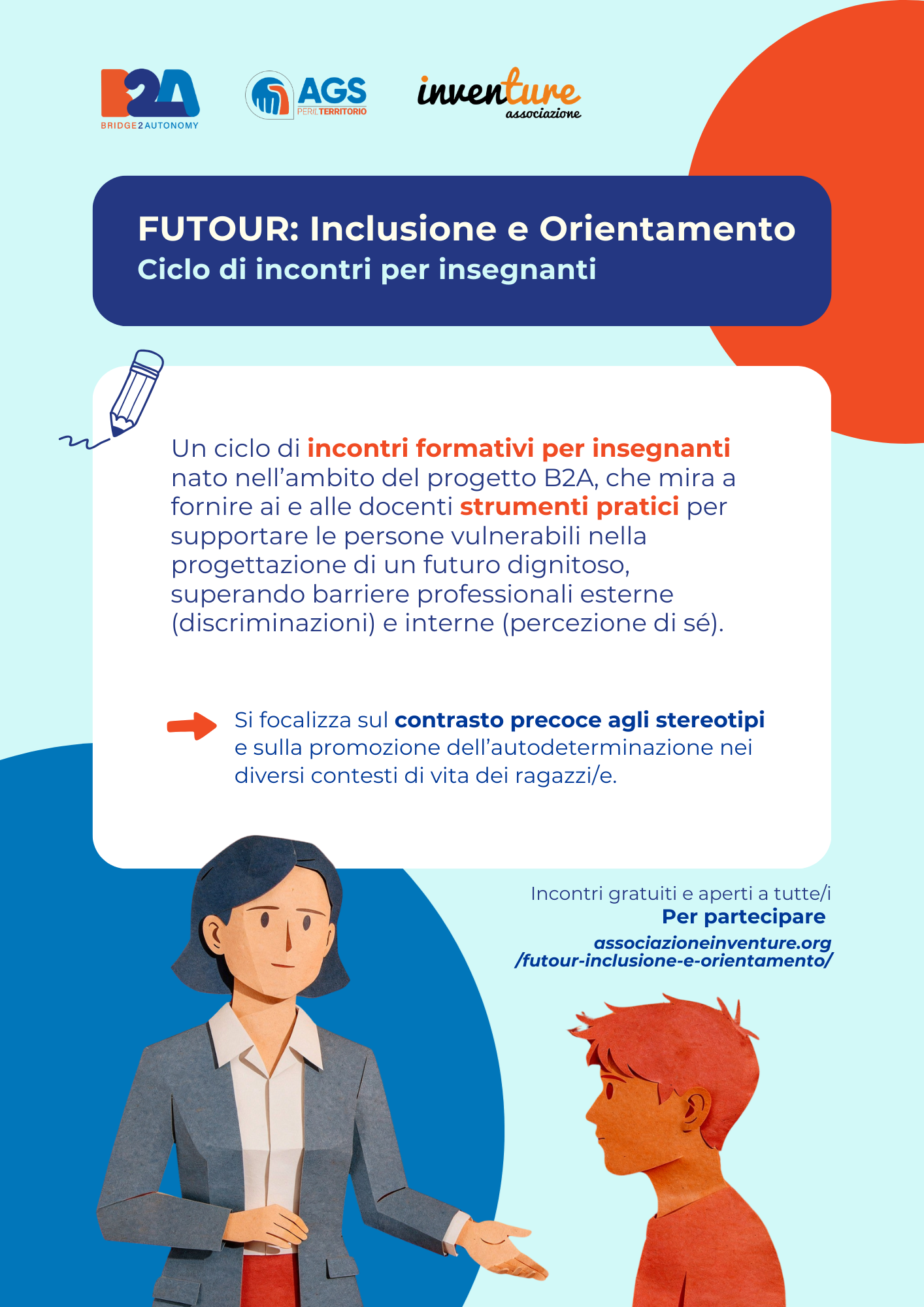 Il percorso FuTour mira a fornire ai docenti di ogni ordine e grado strategie pratiche per sostenere gli studenti più vulnerabili, contrastando precocemente gli stereotipi e promuovendo l’autodeterminazione e l’orientamento dignitoso.