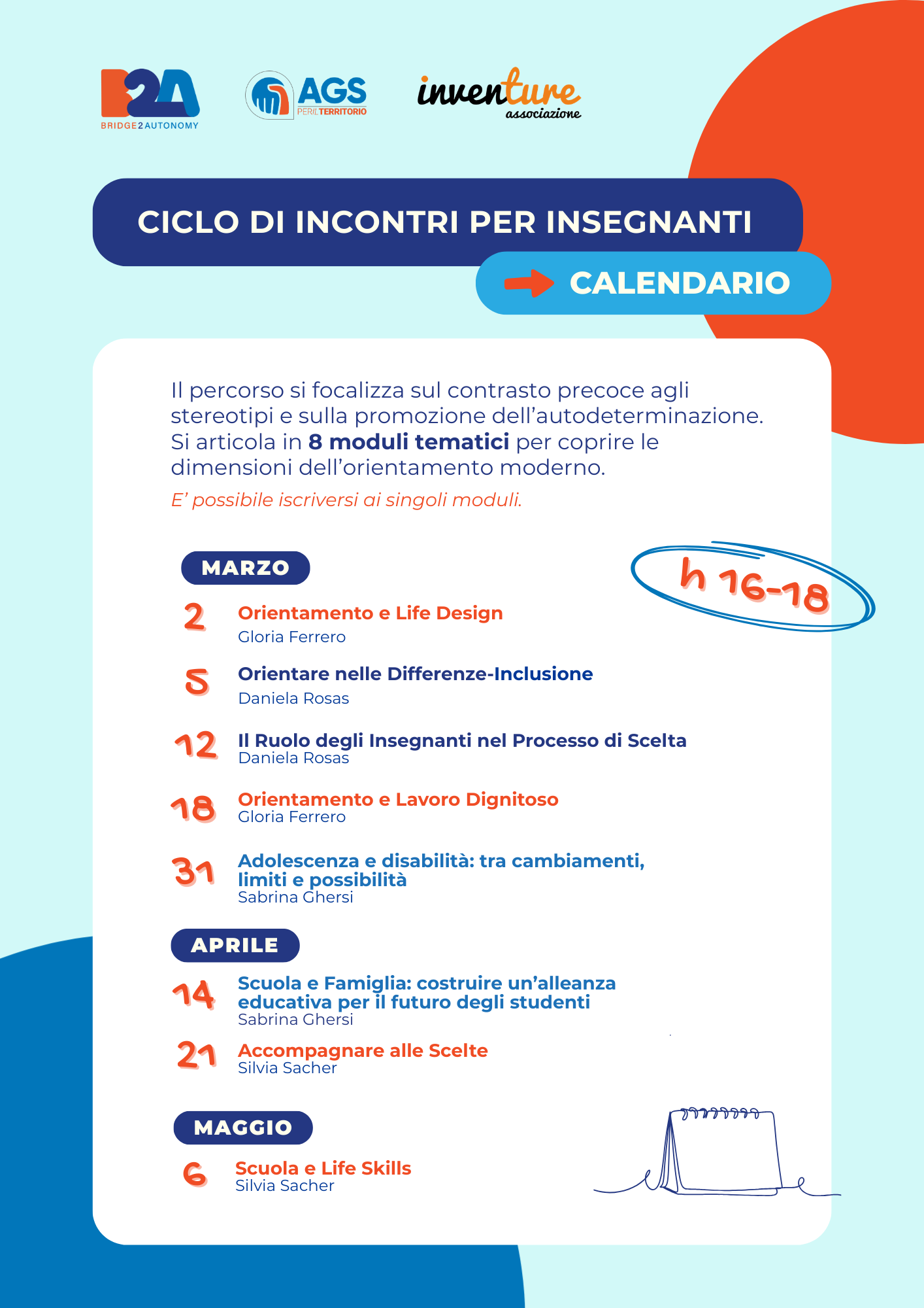 Di seguito il calendario degli appuntamenti con le date degli incontri:
